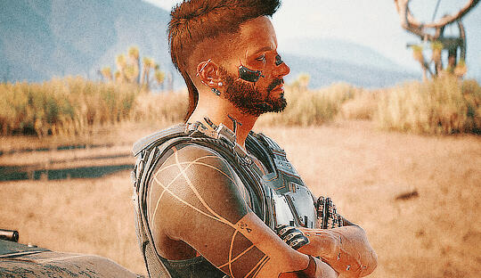 YOU WOULDN'T KNOW LOOKING AT HIM, but Tristan has that neon - lit blood so characteristic of Night City running through his veins. The Mallorys are a corpo family (real old money, too), rubbing elbows with the upper echelons of NC's society and highly involved with Militech. That big corporation would've been the end goal of Tristan's life path, were it not for the spirit of rebellion that took hold of him since youth. The Net wasn't exactly Tristan's calling, but he preferred surfing it for knowledge over being prepared to take over his father's position in the company. Datapads, too, were constant company. He would've excelled in the military if it wasn't for his apprehension for violence. Ironic.TENSIONS WITHIN THE FAMILY REACH an all - time high when Tristan's father disowns him after a heated argument: Tristan is left a futureless 16 year old boy, a boy that takes his life into his own hands after finishing high - school. Shortly after turning 17, Tristan packs a duffel bag, grabs his motorcycle, and leaves Night City for the Badlands.LIKE THE GONK 17 YEAR OLD that he is, he doesn't account for much, only the desperate need to run away from a home that only wanted him for his potential. It doesn't take him long until misfortune slaps him in the face, and it only gets worse when he runs afoul of the Wraiths. It's real fucking lucky, then, that he retreats right into the arms of the Bakker clan. He's a runaway, an outcast, unwanted in and by Night City and he's got nowhere else to go. The nomads take him.TRISTAN GROWS UP ON THE ROAD, and the years harden him into a competent and surprisingly level - headed man. Still, the first time he killed a Raffen, something in him awoke. It was never a fear of violence that stopped him when he was younger, but rather a fear of what he could be if he gave into it. The Badlands require survivors, and survivors can't afford hesitation. Tristan leans into it: he begins installing what cyberware he can in an effort to be the kind of combatant the Bakkers need him to be.THINGS DON'T LAST LONG IN THE clan, because the death of Selita Bakker catapults them into disarray. Tristan loves the clan. It's been more of a family to him than his blood relations ever could be, and it crumbles before his eyes as leaders come and go, unable to bring stability back. When the Bakkers decide to merge with the Snake Nation, Tristan is among the dissidents that abandons the clan. It hurts. He rips the Bakker patch from his vest, but Bakker pride is a tough thing to kill much like he is. He decides to make his way back to Night City, and in impeccable fashion: a smuggling job that goes wrong. Well, at least he can improvise.
